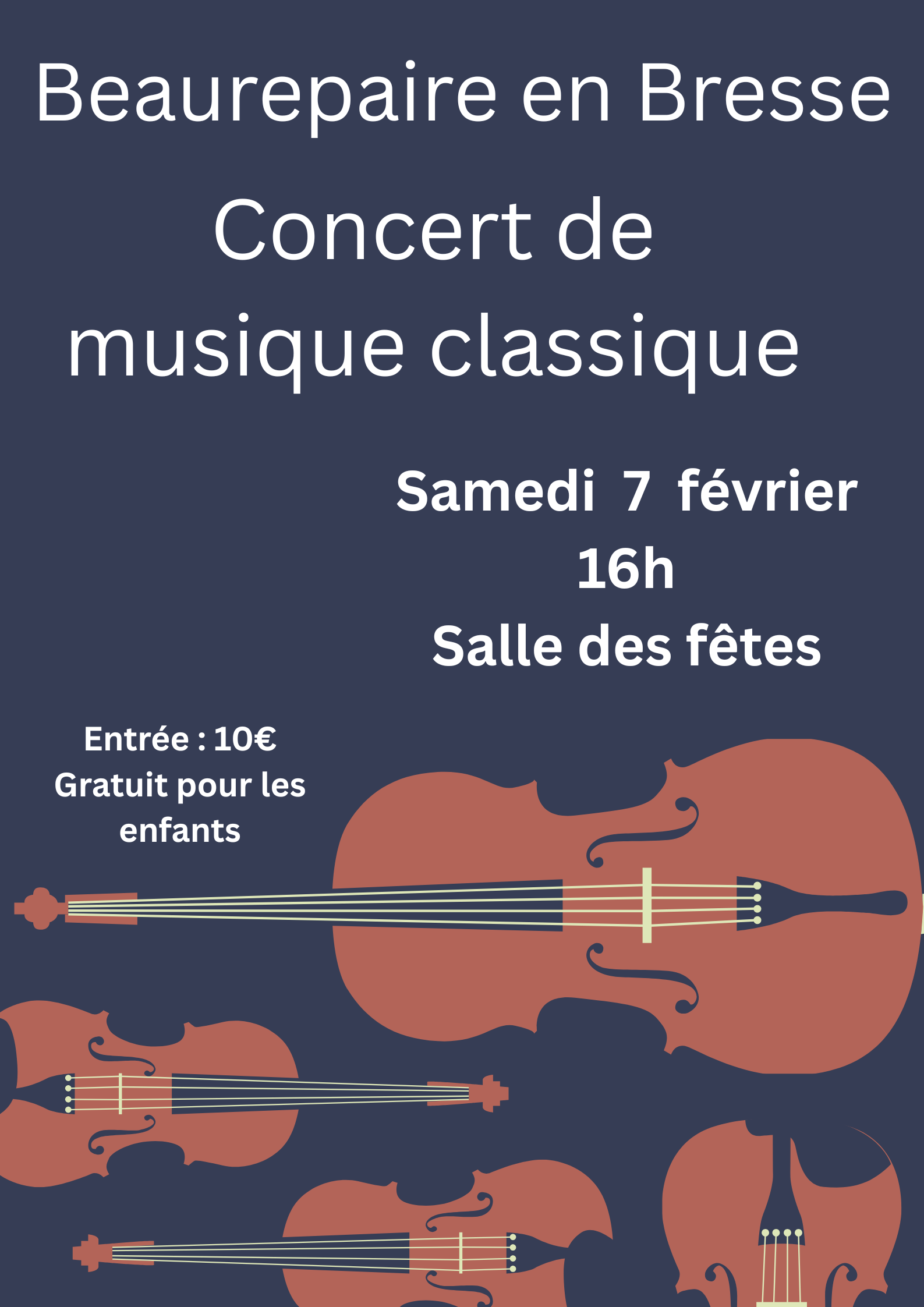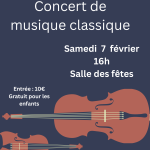 Un concert de musique classique aura lieu à la salle des fêtes le 7 février à 16h